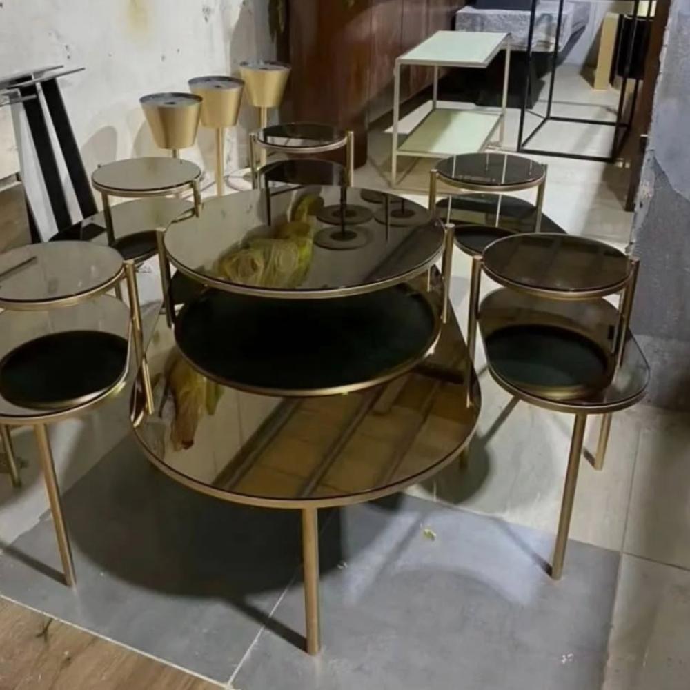 طاولة وسط مدورة بقاعدة خشب اللون بني بقطر 90سم