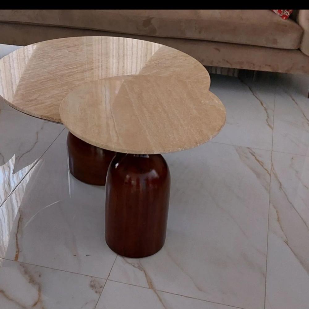 طاولة بسطح رخام ترفنتينو طبيعي بقاعده خشب طبيعي
