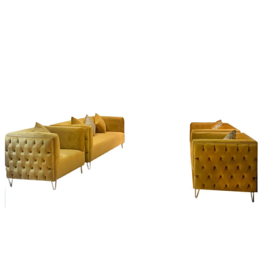 كنب مودرن باللون الأصفر الزاهي ذات جودة عالية من جميع الخامات المستخدمة لصناعة هذا الكنب المميز.