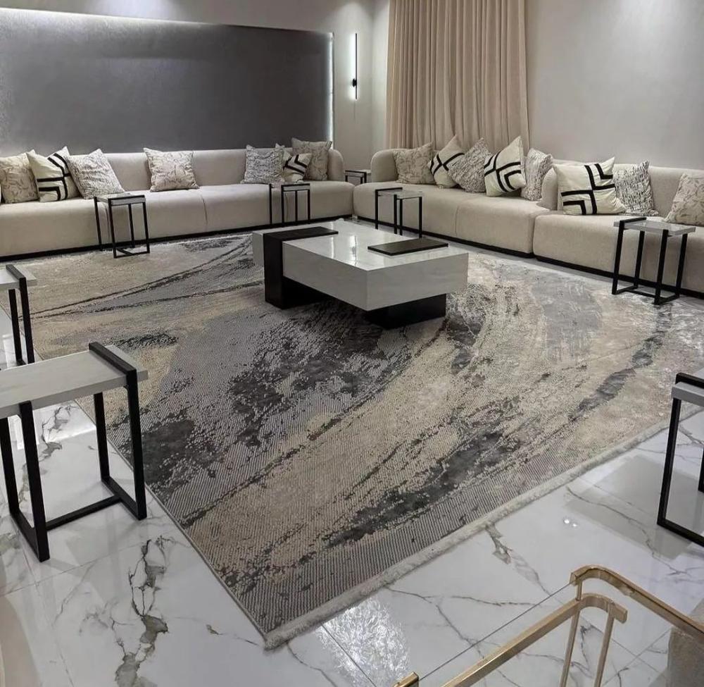 طقم طاولة قهوة مكون من ٩قطعه بديل رخام مع حديد اسود