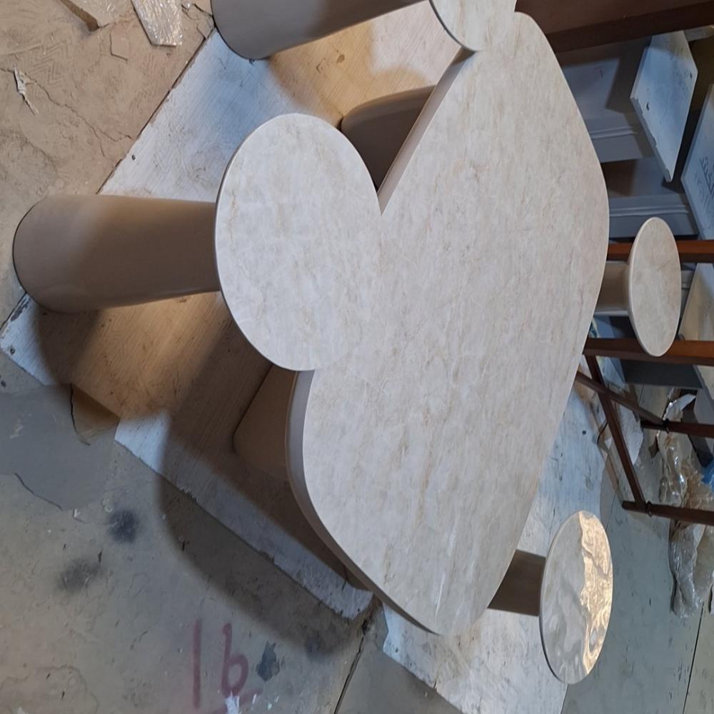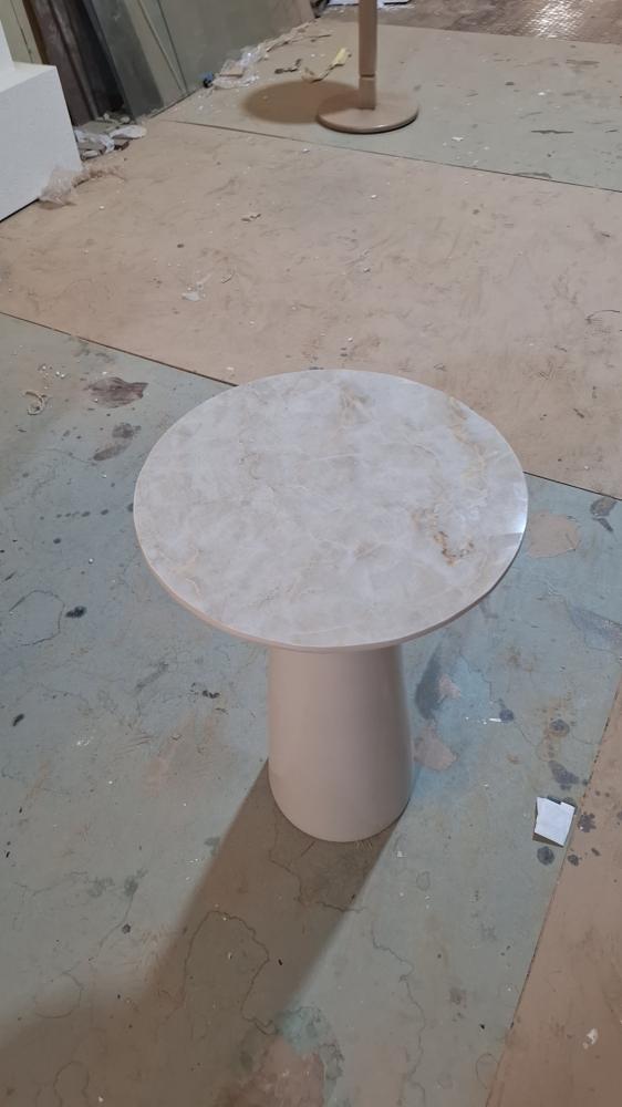 ٤خدمه بتصميم مميز سطح بديل رخام مدور بقاعده خشب طبيعي مخروطي