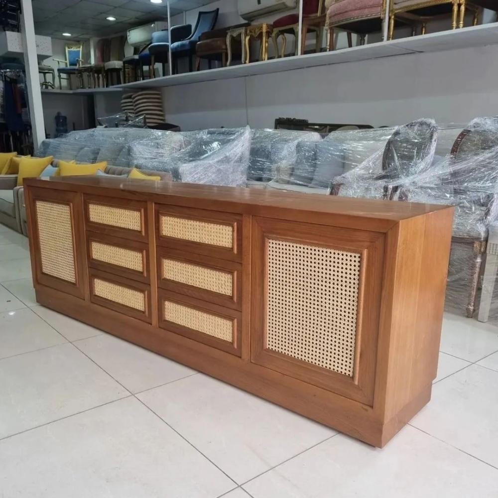 بوفية خشب سنديان مع واجه الرتان خوص طبيعي بتصميم حديث وانيق اللون حسب طلبك المقاس2.44×40×90سمالتنفيذ ١٠يوم