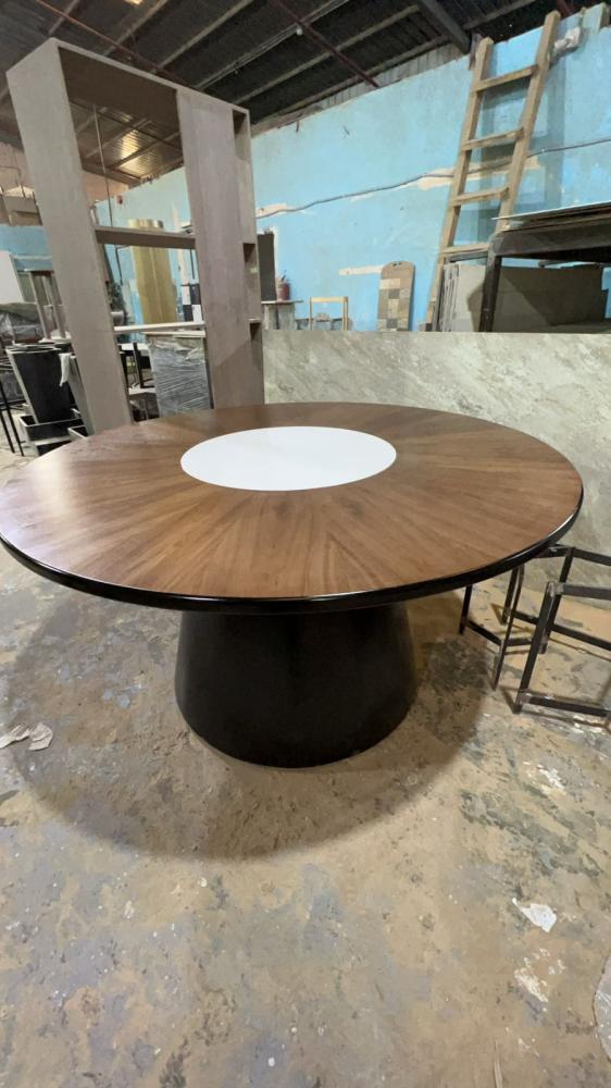 طاولة طعام بشكل دائري سطح قشرة الجوز