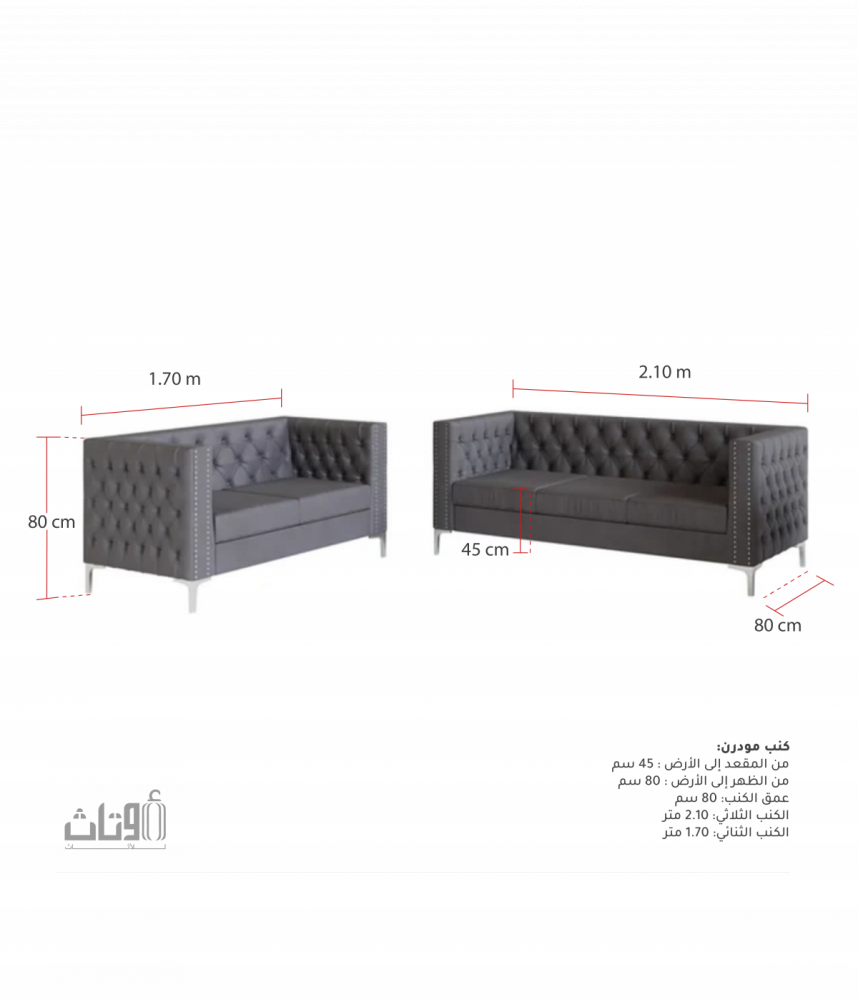 •المقاس الكنبة الثلاثية :2.10 متر.