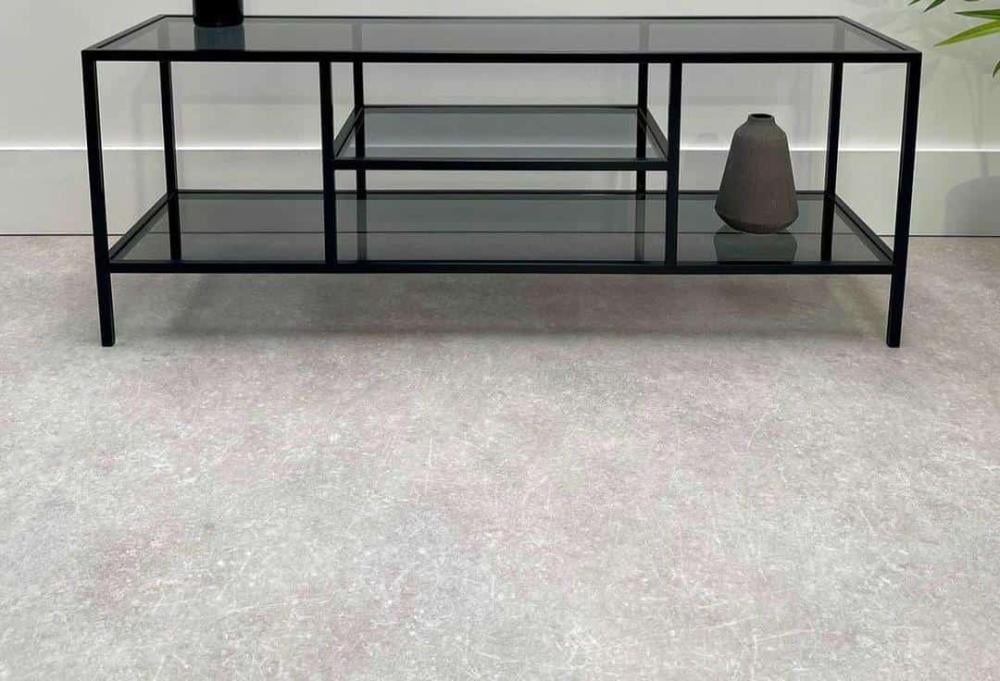 طاولة تلفزيون حديد بويا فرن ضد الصداوالمخوش بسطح قزاز اسود
