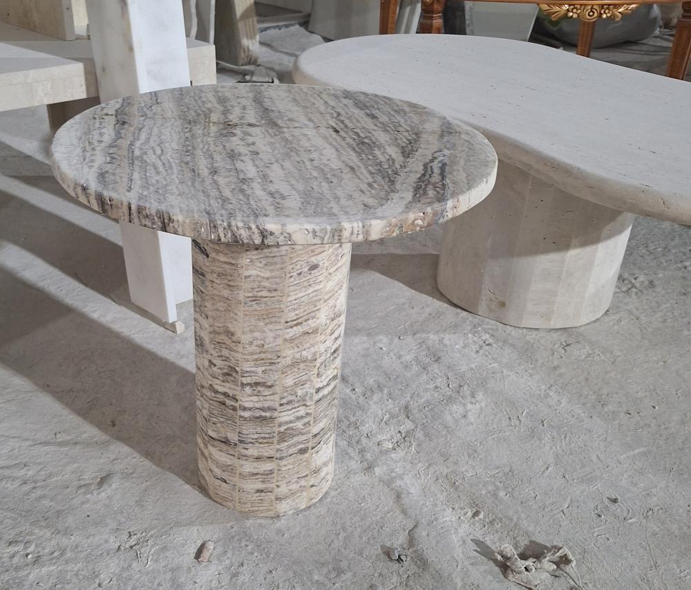 طاولة جانبية رخام ترفنتينو طبيعي ايطالي رمادي القطر ٥٠سم الارتفاع ٦٠سمتفصيل حسب الطلب والمقاس مدةالتنفيذ ١٠يوم