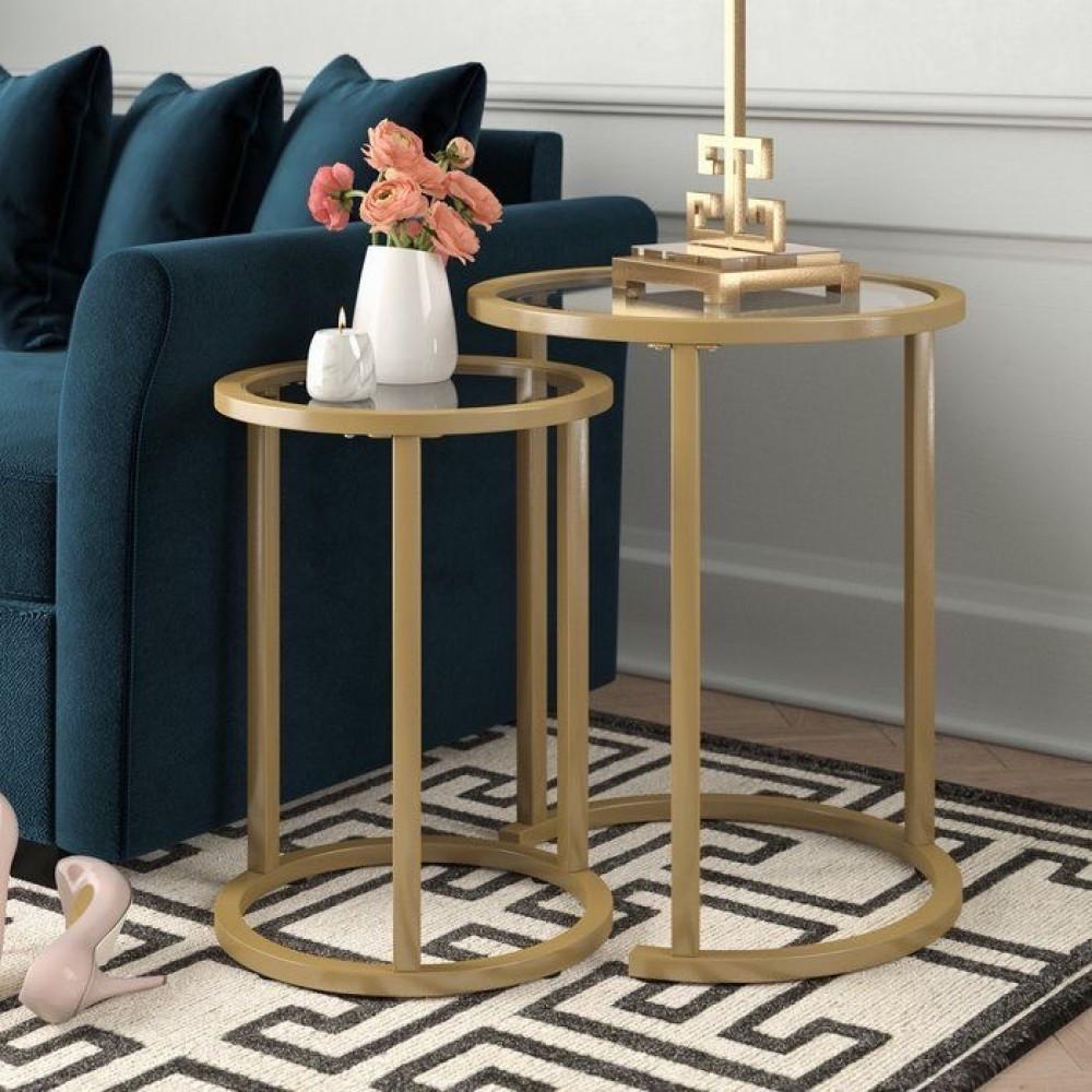 طقم طاولة جانبي بتصميم انيق وحديث مكون من طاولتين متداخله ذات سطح زجاج متين و دهان عالي الجودة .