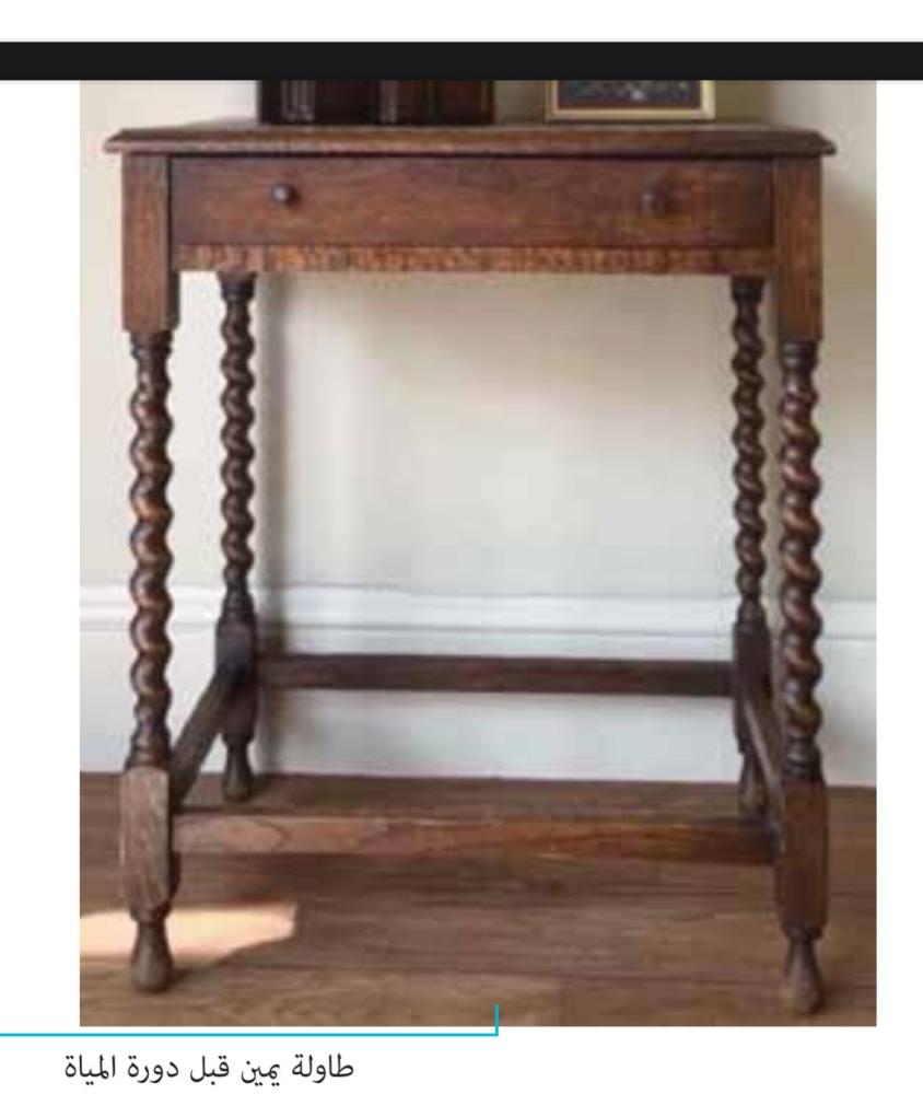 طاولة خشبية بتصميم عتيق. تتميز بدرج واحد وأرجل مخروطية منحنية بأناقة، مما يمنحها مظهرًا كلاسيكيًا. تشير الحرفية إلى أنها قد تكون ذات أهمية تاريخية