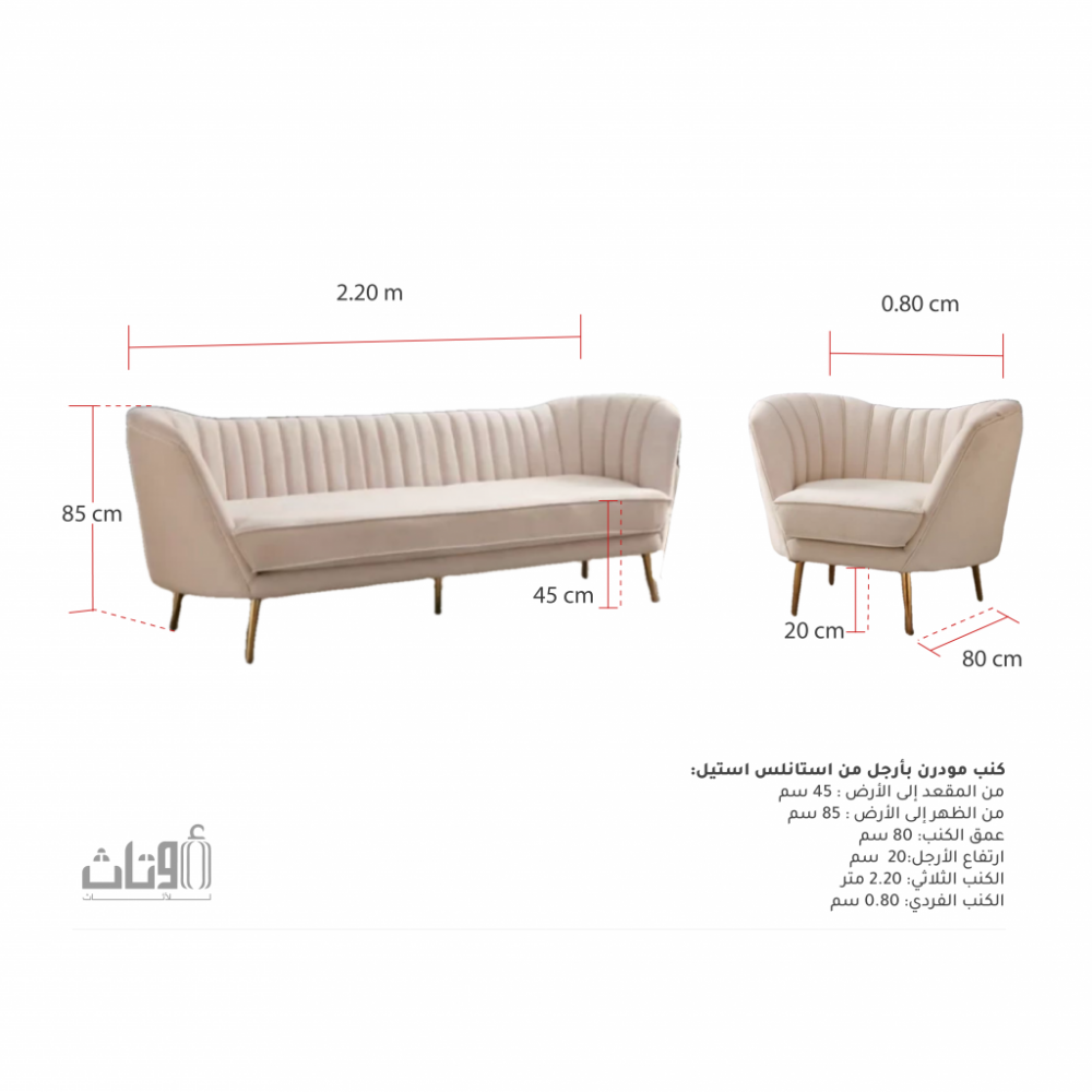 • كنب بأرجل ذهبية من الإستانلس ستيل مما زاد من فخامة الأثاث وأضاف له لمسة فريدة