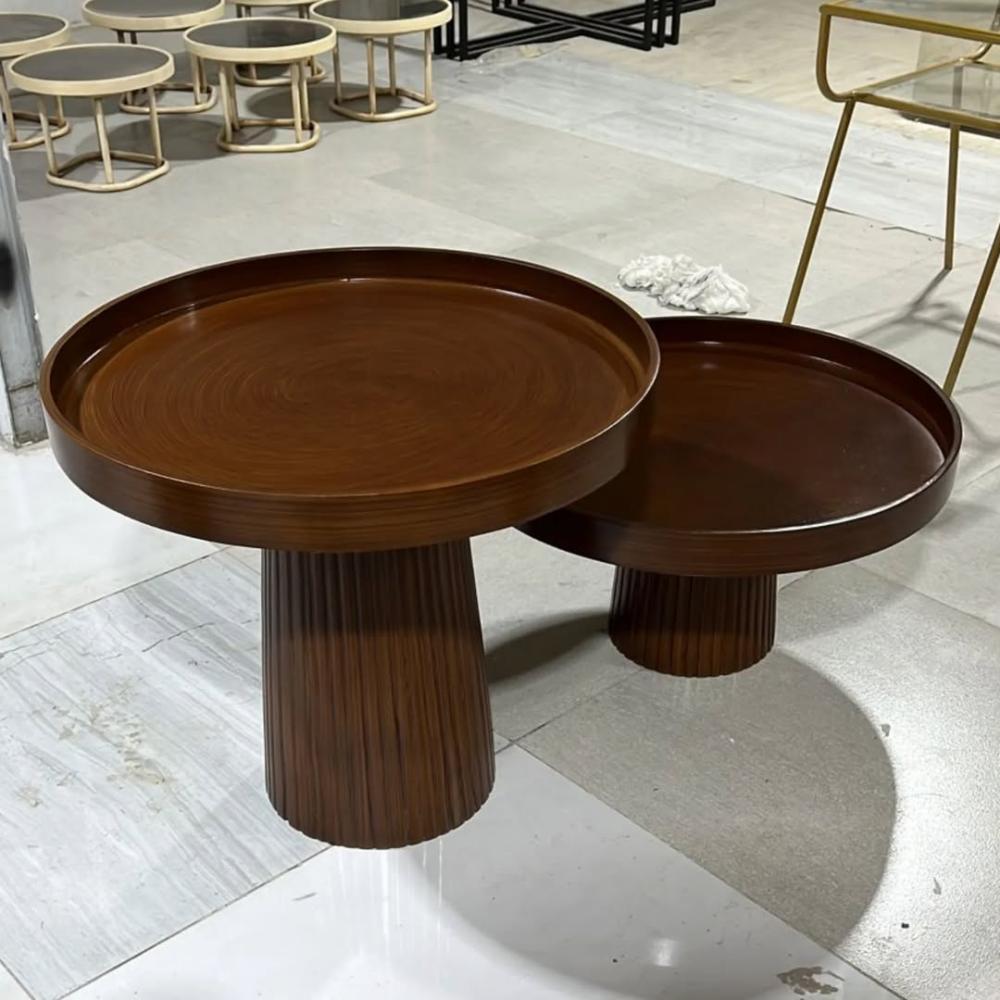 طاولات ضيافة بتصميم حديث وانيق وشكل مدور بلون البني